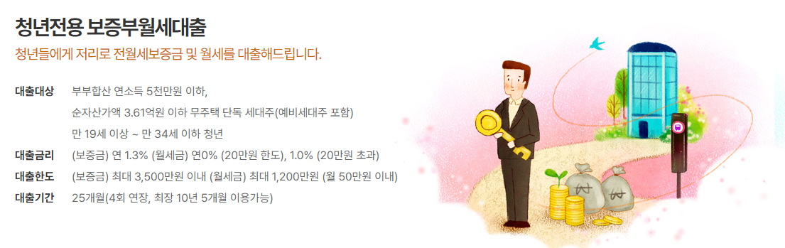 청년들에게 저리로 전월세보증금 및 월세를 대출해드립니다.